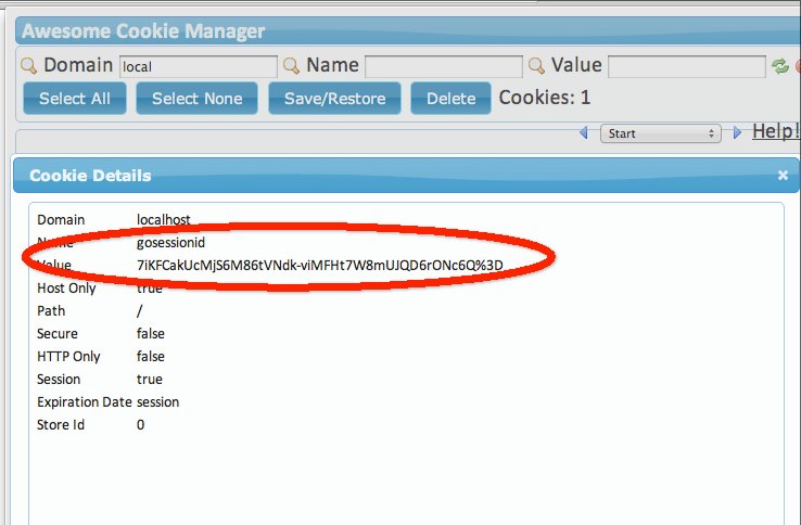 This step is very important: open another browser (I use firefox here), copy the URL to the new browser, open a cookie simulator to create a new cookie and input exactly the same value as the cookie we saw in our first browser.